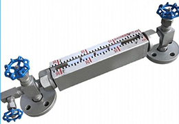 液位計(jì)是利用其內(nèi)部的磁性浮子隨液位變化產(chǎn)生的磁位移,使得液位視窗的紅白磁翻柱作相應(yīng)的翻轉(zhuǎn)來(lái)指示液位的高度。當(dāng)浮子下降時(shí),由紅色轉(zhuǎn)為白色,紅色始終表示液位的高低。