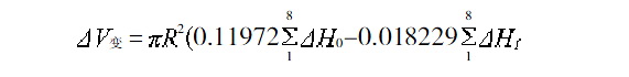 式中:K=M · N;R 為罐底的半徑;H0 為罐底中心高度;HI 為圓周(I)上測點高度;HM-1 為圓周(M-1) 上測點高度。M 和N 由精度確定。通常取M=N=8,則此時底部變形量為: