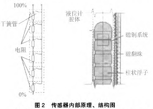 傳感器的作用是采樣液位高低位置并轉(zhuǎn)換成標準信號傳送至控制室,傳感器實際由干簧管和電阻組成。當浮子內(nèi)磁鋼位置變化后,磁場通過器壁帶動傳感器內(nèi)干簧管觸點吸合。干簧管吸合的位置決定回路的阻抗大小,干簧管的通常位置為10mm1組?;芈返拇笮≌门c液位的高低成正比,這樣*后由置于傳感器外殼內(nèi)的變送器將電阻信號轉(zhuǎn)換成標準的電流信號,送至控制室。具體結(jié)構(gòu)、原理圖見圖2。