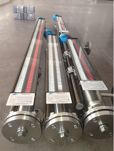 根據(jù)浮力原理,浮子在測量管內(nèi)隨液位的升降而上、下移動,浮子內(nèi)的永久磁鋼通過耦合作用,驅(qū)動紅、白色翻柱翻轉(zhuǎn)180°,液位上升時翻柱由白色轉(zhuǎn)為紅色,下降時由紅色轉(zhuǎn)為白色,從而實現(xiàn)液位指示。