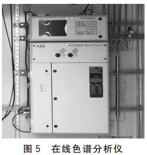 (1)利用電加熱氣化取樣探頭,把測(cè)量介質(zhì)引入在線色譜分析儀,實(shí)時(shí)分析氣體組分。在使用在線色譜分析儀(圖5)時(shí),需要配合標(biāo)氣及載氣,提前對(duì)色譜進(jìn)行標(biāo)定。預(yù)處理部分,先把每個(gè)取樣管路取下來吹掃5~10min(取樣探頭壓力設(shè)定為2~3kg),保證沒有雜質(zhì)摻入,然后接上管線。要注意定期檢查色譜載氣(H2或者N2)使用情況,及時(shí)更換。如果更換不及時(shí),在使用完之前,*好停用色譜,防止燒壞檢測(cè)器。
