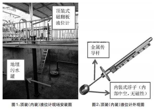 該區(qū)塊集氣站使用的是地埋污水罐,主要作用是對(duì)集氣站內(nèi)生產(chǎn)污水進(jìn)行沉降。在運(yùn)行過(guò)程中,燃油液位計(jì)故障導(dǎo)致顯示數(shù)據(jù)不準(zhǔn),一方面對(duì)污水液位情況掌握不準(zhǔn)確,另一方面會(huì)出現(xiàn)不安全因素,甚至安全事故。該井區(qū)地埋污水罐使用的液位計(jì)為頂裝式磁翻板(磁浮子)液位計(jì),根據(jù)液位計(jì)磁性材質(zhì)所在位置的不同燃油液位計(jì)也稱為內(nèi)裝式磁翻板液位計(jì)。