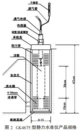 GeoKon 4675 型靜力水準儀是一種高精密液位系統(tǒng),該系統(tǒng)設(shè)計是 用于測量多點相對沉降的系統(tǒng)。在使用中,一系列的傳感器容器均采用PVC 液管聯(lián)接,每一容器的液位由一精密振弦式力傳感器測出,該傳感 器內(nèi)有一個自由懸重,一旦液位發(fā)生變化,懸重的懸應浮力即被傳感器感,精確測出小至 0.025mm 的垂直變化。在多點系統(tǒng)中,所有傳感器的垂 直位移均是相對于其中的一點,該點的垂直位移是相對恒定的或者可用其它人工觀測手段準來確定。