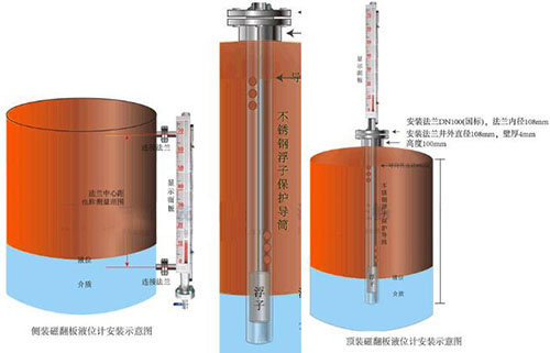 3、使用前應(yīng)先用校正磁鋼將零位以下的小球置成紅色,其它球置成白色;打開底法蘭,裝入磁性浮子(注意:重端帶磁性一端向上,不能倒裝。);