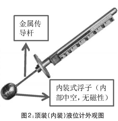 該區(qū)塊集氣站使用的是地埋污水罐,主要作用是對(duì)集氣站內(nèi)生產(chǎn)污水進(jìn)行沉降。在運(yùn)行過程中,冷凝水液位計(jì)故障導(dǎo)致顯示數(shù)據(jù)不準(zhǔn),一方面對(duì)污水液位情況掌握不準(zhǔn)確,另一方面會(huì)出現(xiàn)不安全因素,甚至安全事故。該井區(qū)地埋污水罐使用的液位計(jì)為頂裝式磁翻板(磁浮子)液位計(jì),根據(jù)液位計(jì)磁性材質(zhì)所在位置的不同冷凝水液位計(jì)也稱為內(nèi)裝式磁翻板液位計(jì)。