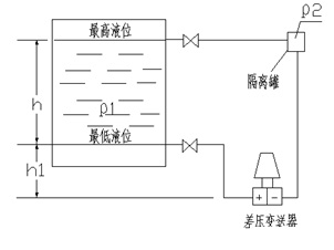 壓力式液位計(jì)采用靜壓測(cè)量原理,當(dāng)液位變送器投入到被測(cè)液體中某一深度時(shí),傳感器迎液面受到的壓力的同時(shí),通過(guò)導(dǎo)氣不銹鋼將液體的壓力引入到傳感器的正壓腔,再將液面上的大氣壓 Po 與傳感器的負(fù)壓腔相連,以抵消傳感器背面的 Po ,使傳感器測(cè)得壓力為:ρ.g.H ,通過(guò)測(cè)取壓力 P,可以得到液位深度。