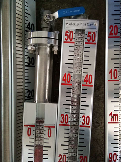 根據(jù)浮力原理,浮子在測量管內(nèi)隨液位的升降而上、下移動(dòng),浮子內(nèi)的永久磁鋼通過耦合作用,驅(qū)動(dòng)紅、白色翻柱翻轉(zhuǎn)180°,液位上升時(shí)翻柱由白色轉(zhuǎn)為紅色,下降時(shí)由紅色轉(zhuǎn)為白色,從而實(shí)現(xiàn)液位指示。