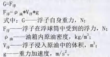 通過上式可以看出,浮球桶進入液體體積約為1/2左右,說明其對于密度為0.92g/c3的中到重質(zhì)油測量液位非常合適,避免了人工測量產(chǎn)生的人為誤差,更對于測量人員靠近罐口可能產(chǎn)生的危險進行了有效的規(guī)避。