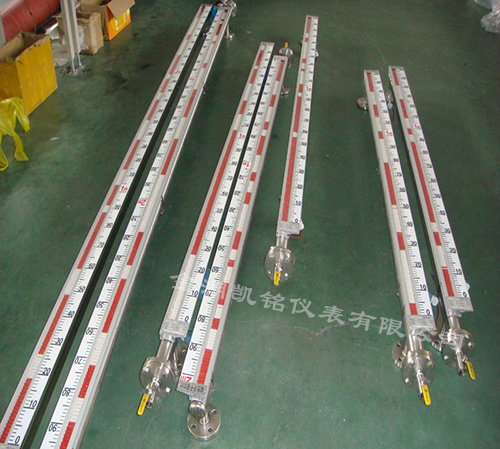 根據(jù)浮力原理,浮子在測量管內(nèi)隨液位的升降而上、下移動(dòng),浮子內(nèi)的永久磁鋼通過耦合作用,驅(qū)動(dòng)紅、白色翻柱翻轉(zhuǎn)180°,液位上升時(shí)翻柱由白色轉(zhuǎn)為紅色,下降時(shí)由紅色轉(zhuǎn)為白色,從而實(shí)現(xiàn)液位指示。