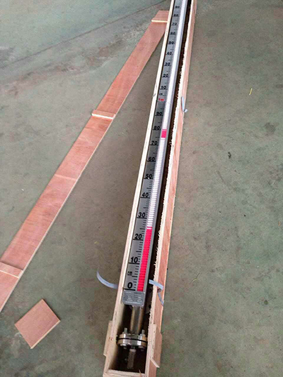 根據(jù)浮力原理,浮子在測量管內隨液位的升降而上、下移動,浮子內的永久磁鋼通過耦合作用,驅動紅、白色翻柱翻轉180°,液位上升時翻柱由白色轉為紅色,下降時由紅色轉為白色,從而實現(xiàn)液位指示。